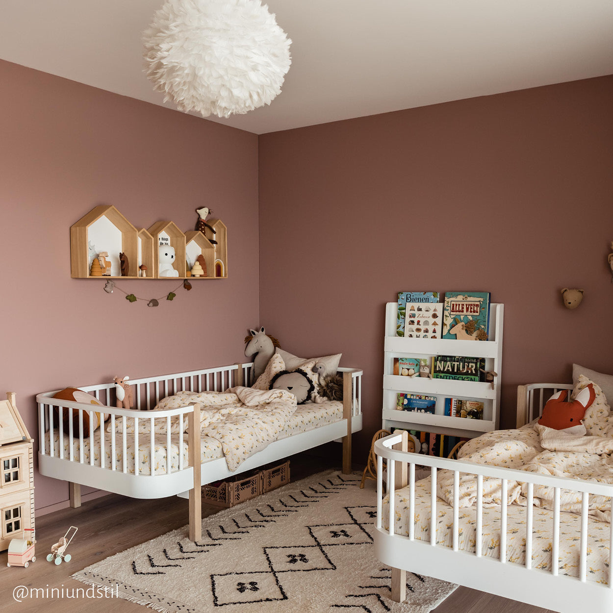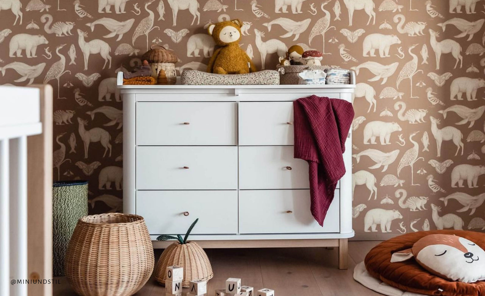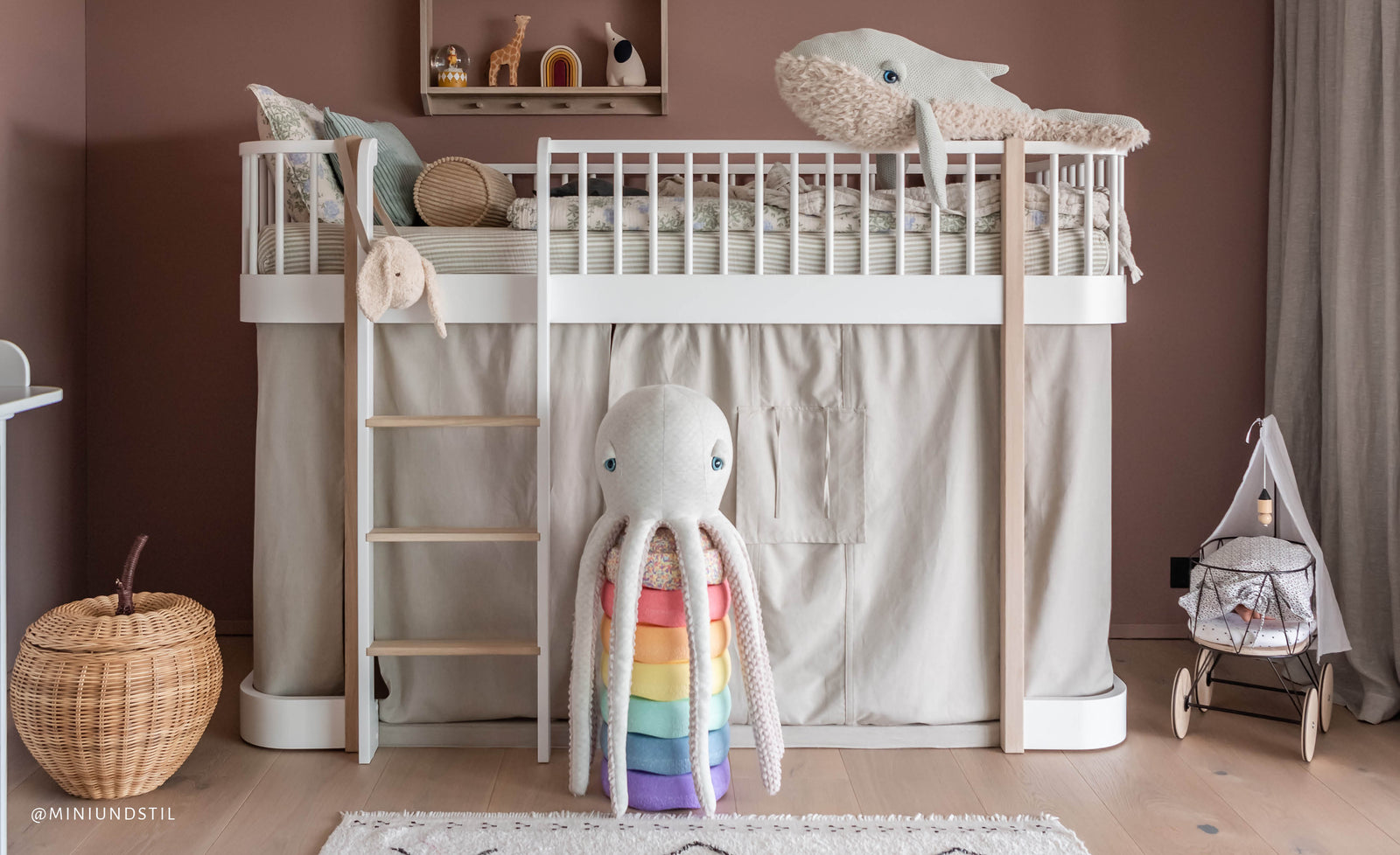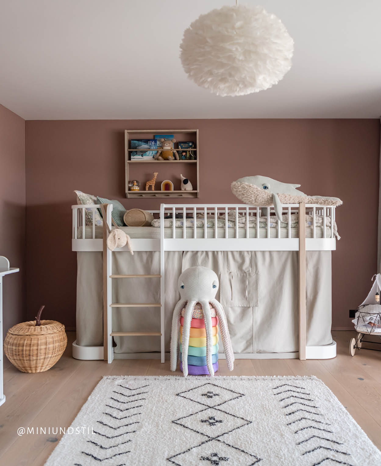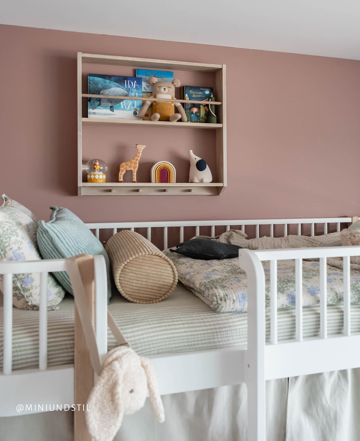 It was in her youngest daughter's baby room large changing table and the Wood Mini+ baby bed from Oliver Furniture. With a conversion set, the baby bed can easily be converted into a junior bed after the baby is over. Look how beautifully Isabelle styled the bed.