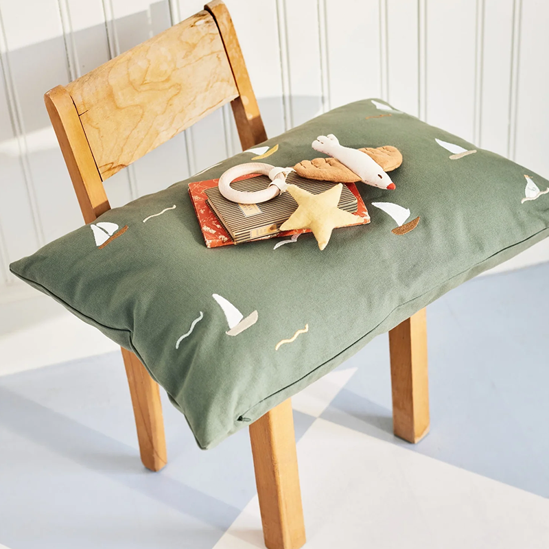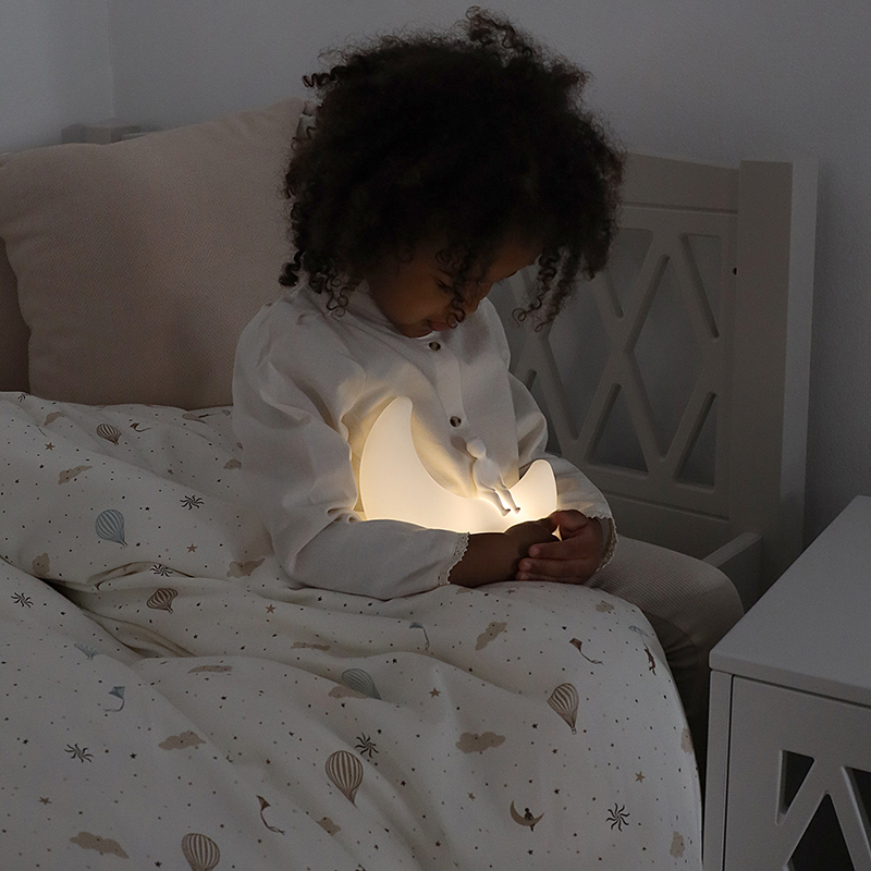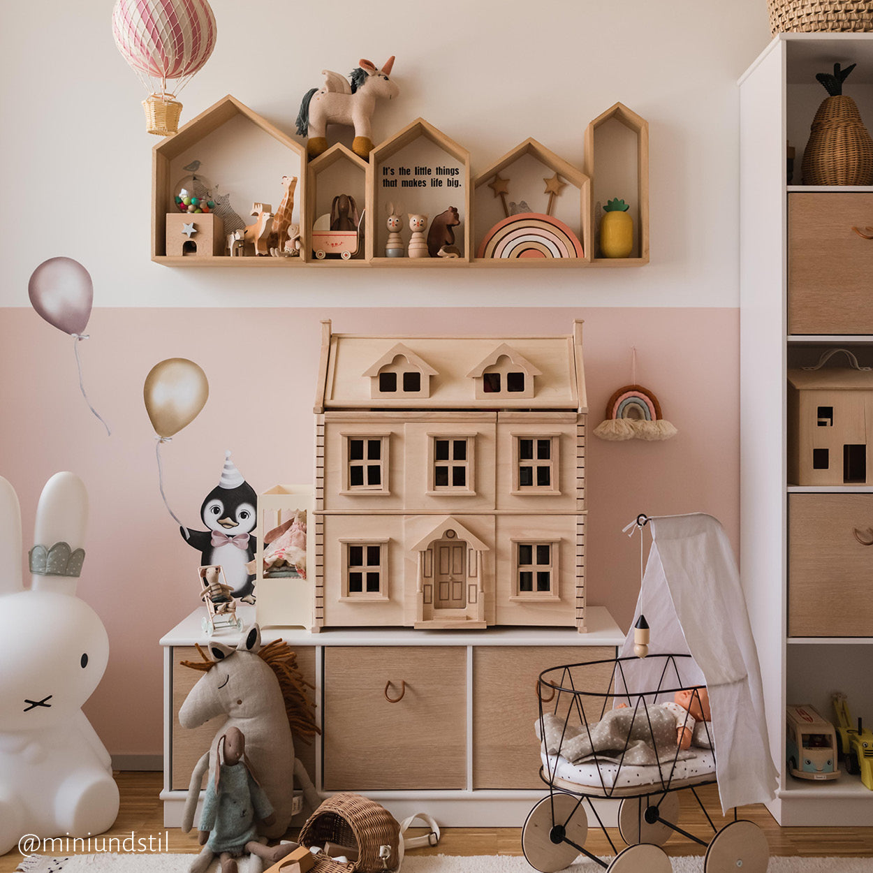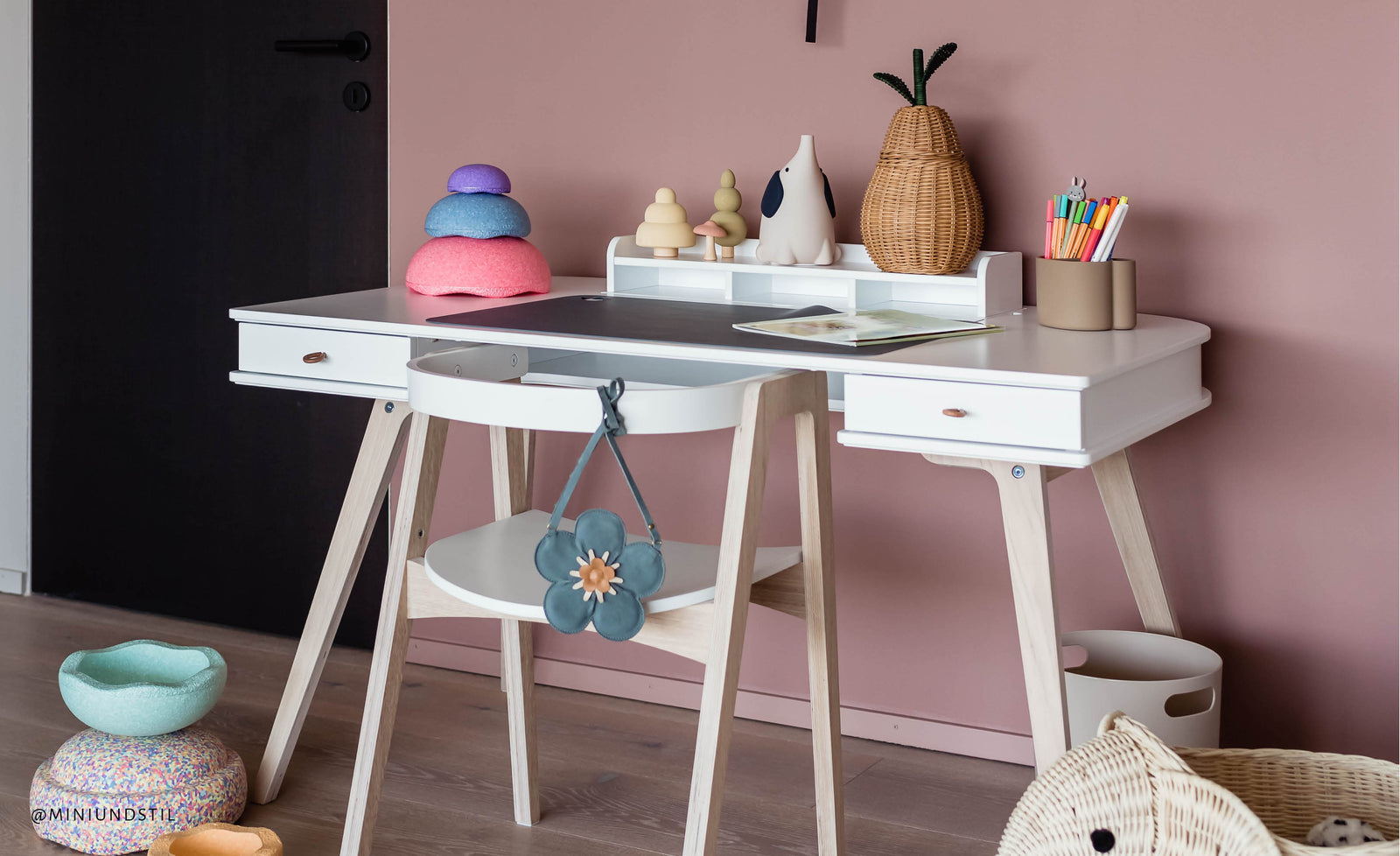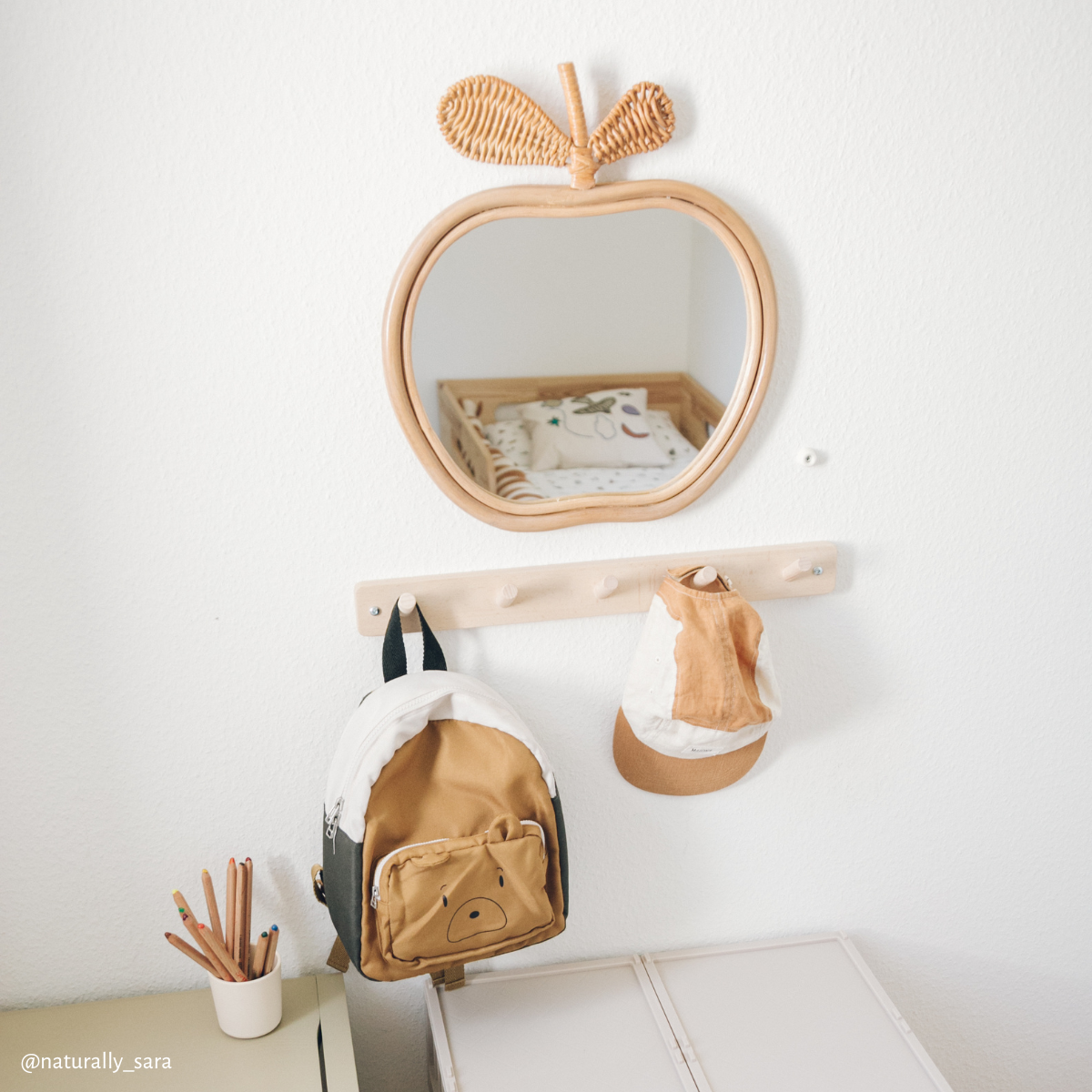 It was in her youngest daughter's baby room large changing table and the Wood Mini+ baby bed from Oliver Furniture. With a conversion set, the baby bed can easily be converted into a junior bed after the baby is over. Look how beautifully Isabelle styled the bed.