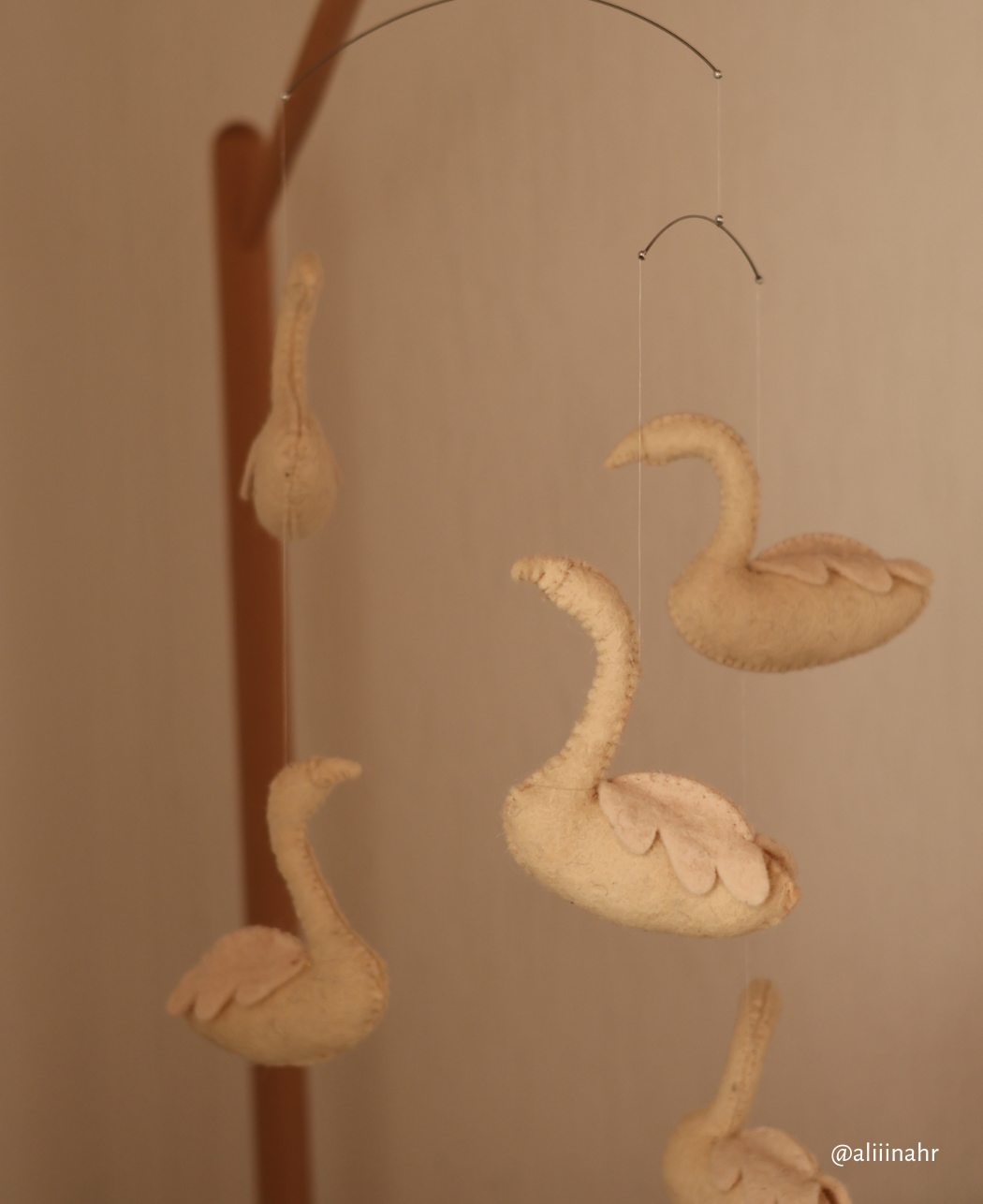 The beautiful Swan Mobile on Quax settles with the mobile stand It can be placed above the bedside crib and its movements create a calming effect.