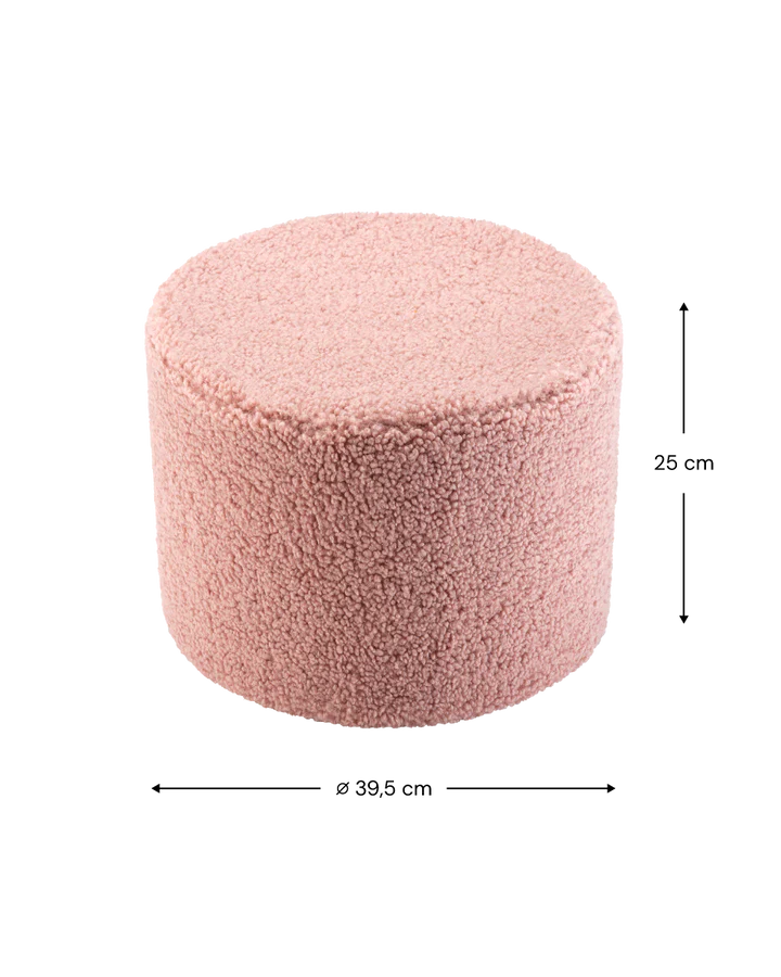 The cuddly children's stool in Guava made of teddy fabric from the Latvian brand Wigiwama offers a comfortable seating area
